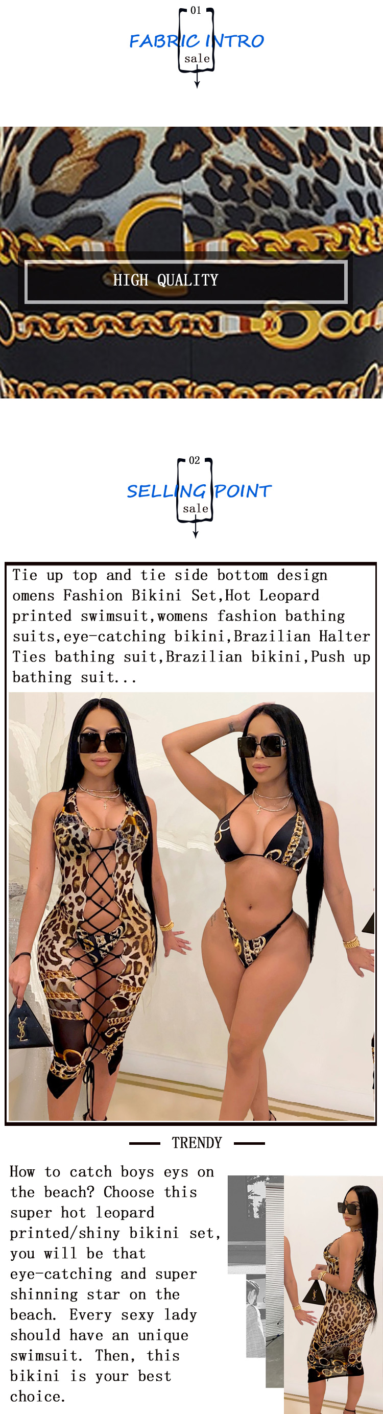 Custom Swimwear & Beachwear Ties Leopard Swim Cover Up Sets & 3 Piece Swimsuits 2021 Women's Swimwear Bikinis