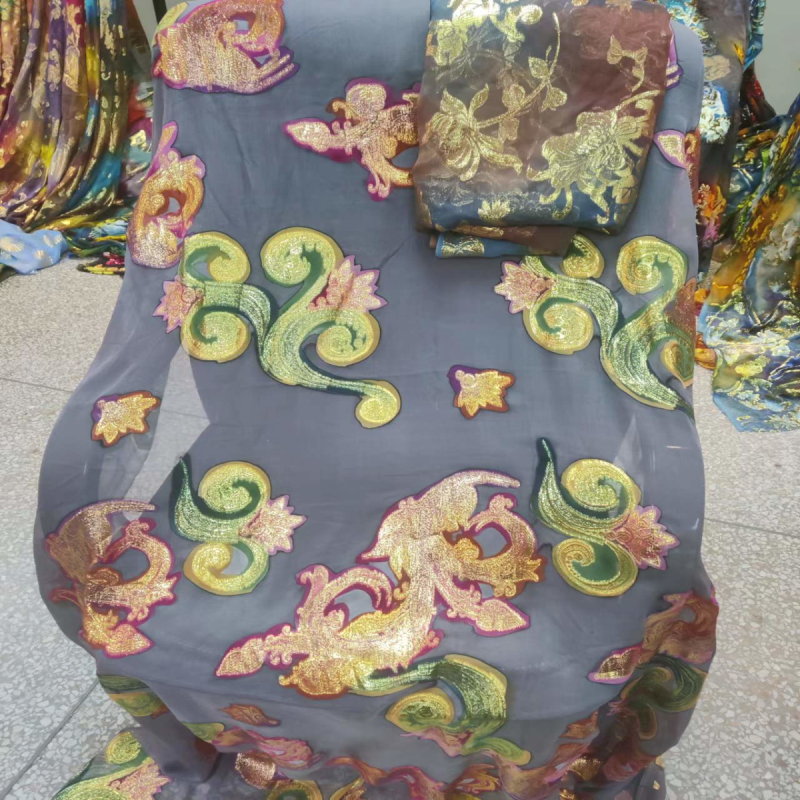 Custom design gorgora somali high-grade silk embroidery fabric baati silk burnout Garbasaar Dirac Somali bride Somali Dirac suit