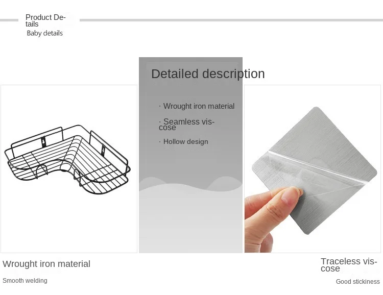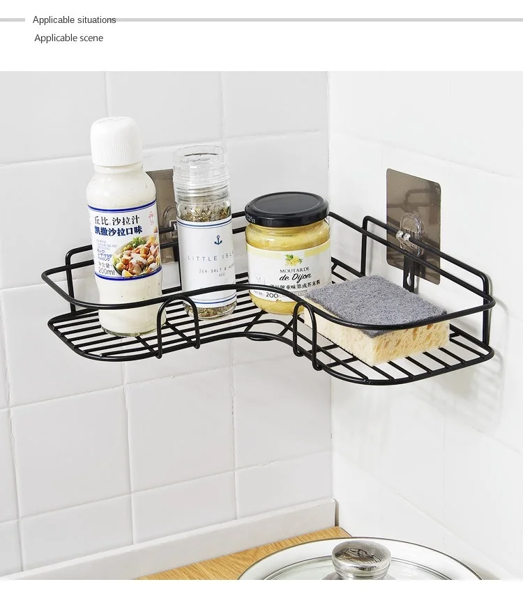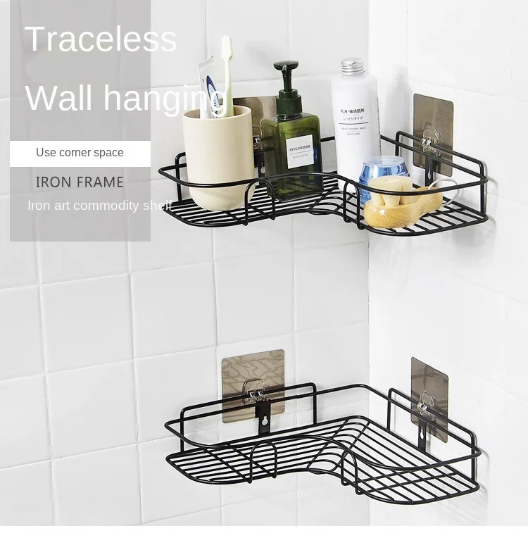 Custom factory Iron work bathroom shower gel soap toilet toilet strong glue washing basket wall hanging triangle storage rack