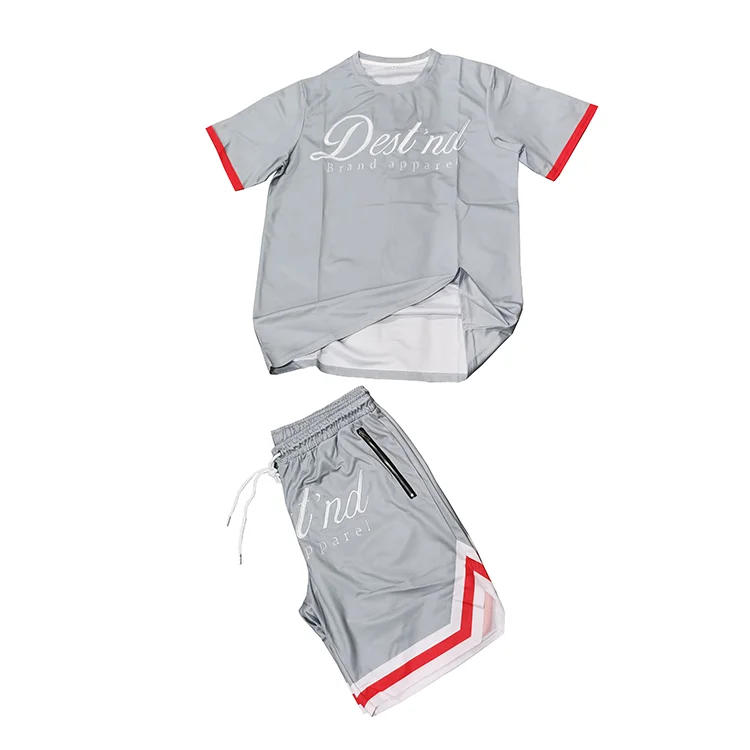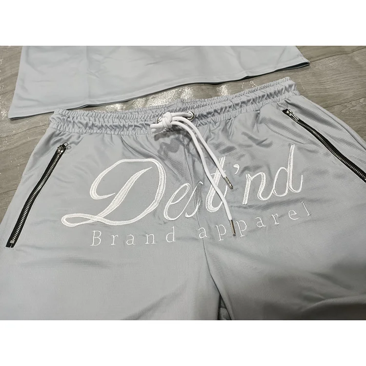 Custom make men suits grey t shirts and short sets men summer suits embroidery