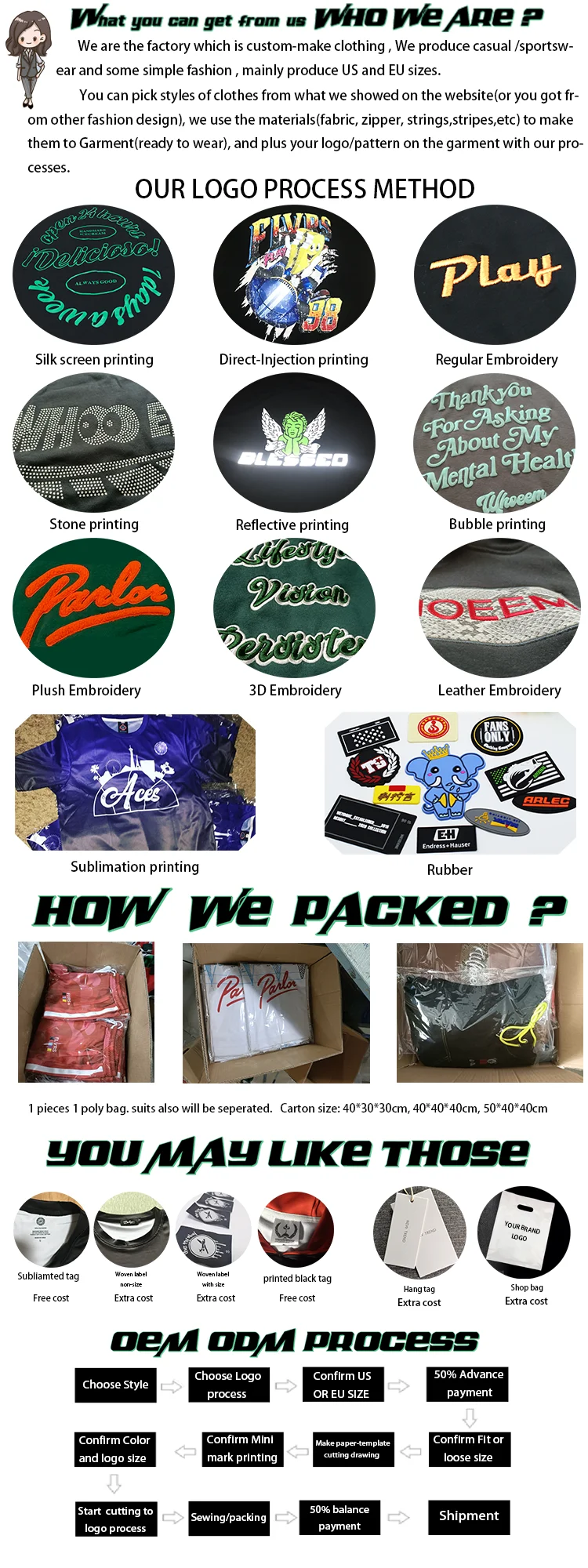 | OEM&ODM Serivce | Accept Custom Label to stitch on the clothes. Custom Hang tag on the Clothes. Custom print for packing bag.(USD35, has 1000pcs, can use for your next order!) |