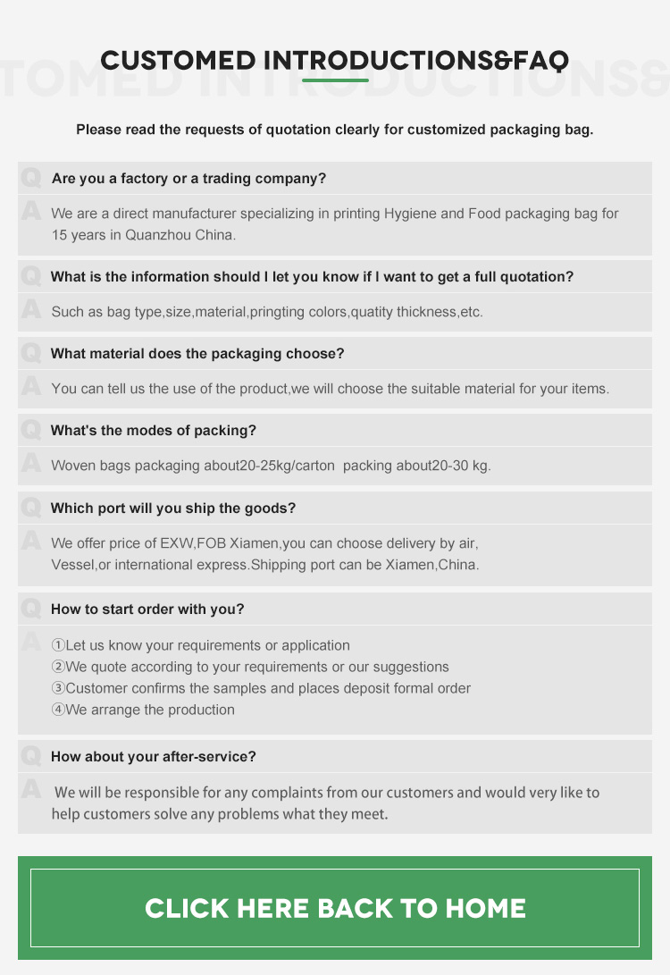| Package: | Woven bag packaging/carton packaging | Place of origin: | Quanzhou, China |