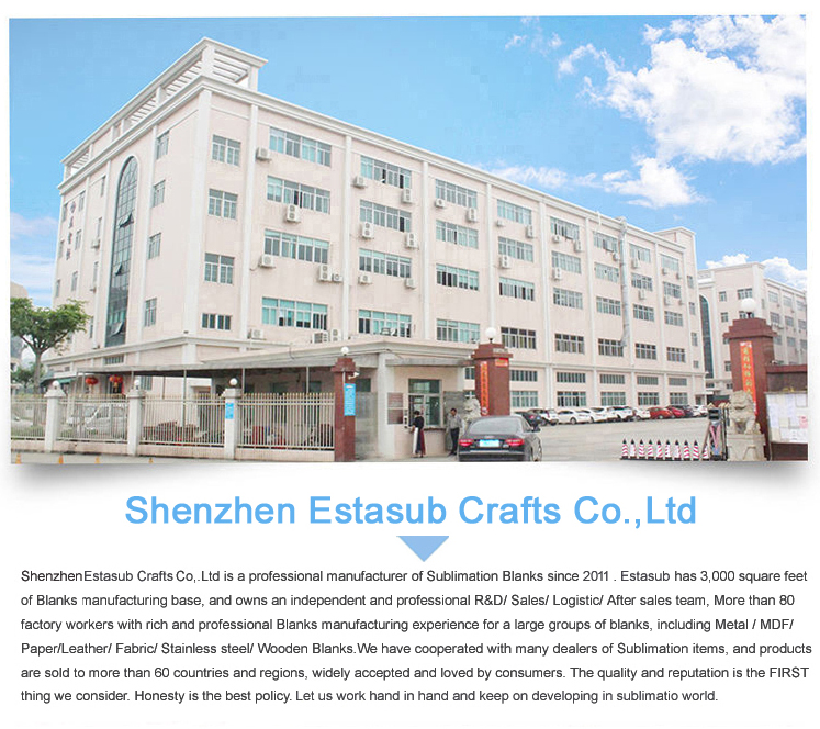 A: Our factory was founded in 2011, located in Shenzhen City, Guangdong Province, and Estasub is also a comprehensive Sublimation manufacturer integrating innovation, design, sampling and production.