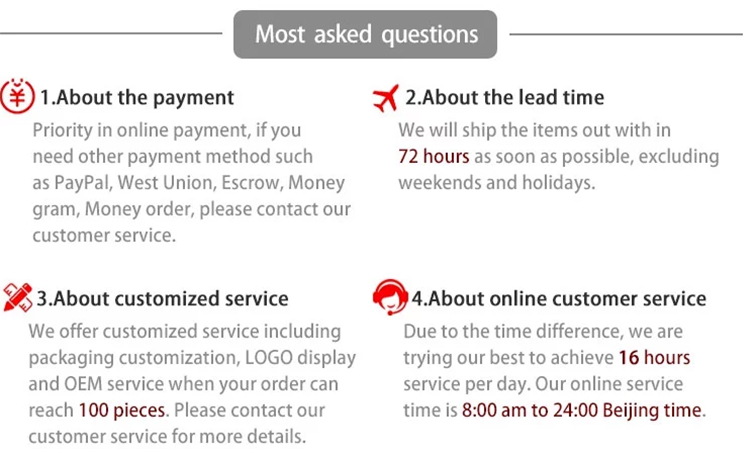 | pay: | PayPal, Credit Card, T/T, Western Union, MoneyGram, Alipay | Shipping: | DHL , UPS , TNT , FedEx , EMS , Aramex , air freight, sea freight |