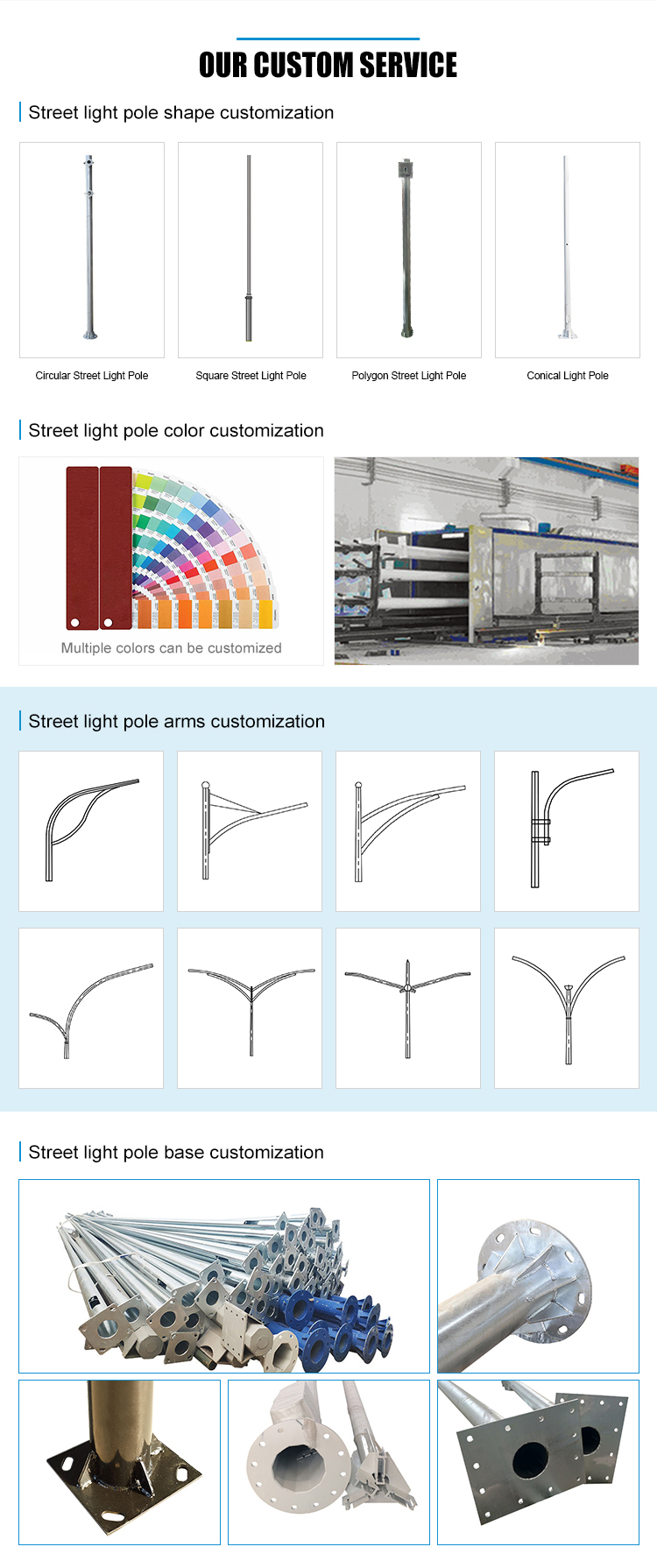 | Height (m) | diameter (mm) | Thickness (mm) | Flange(mm) | arm length(mm) | light source power (w) |