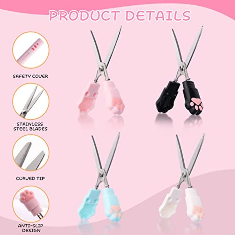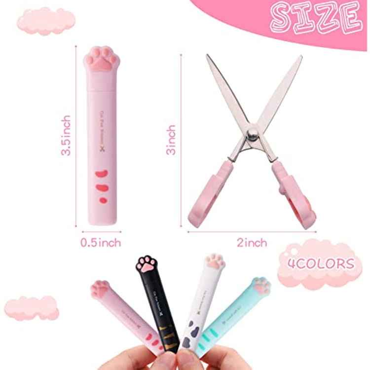 Cute Scissors Mini Scissors Cartoon Cat Paw Stainless Steel Folding Stationery Scissors Cute Stationary Scissors