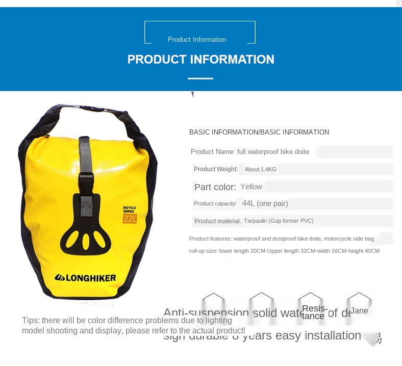 | Key words: | Waterproof bicycle rear rack bag | Function: | outdoor bike bag |