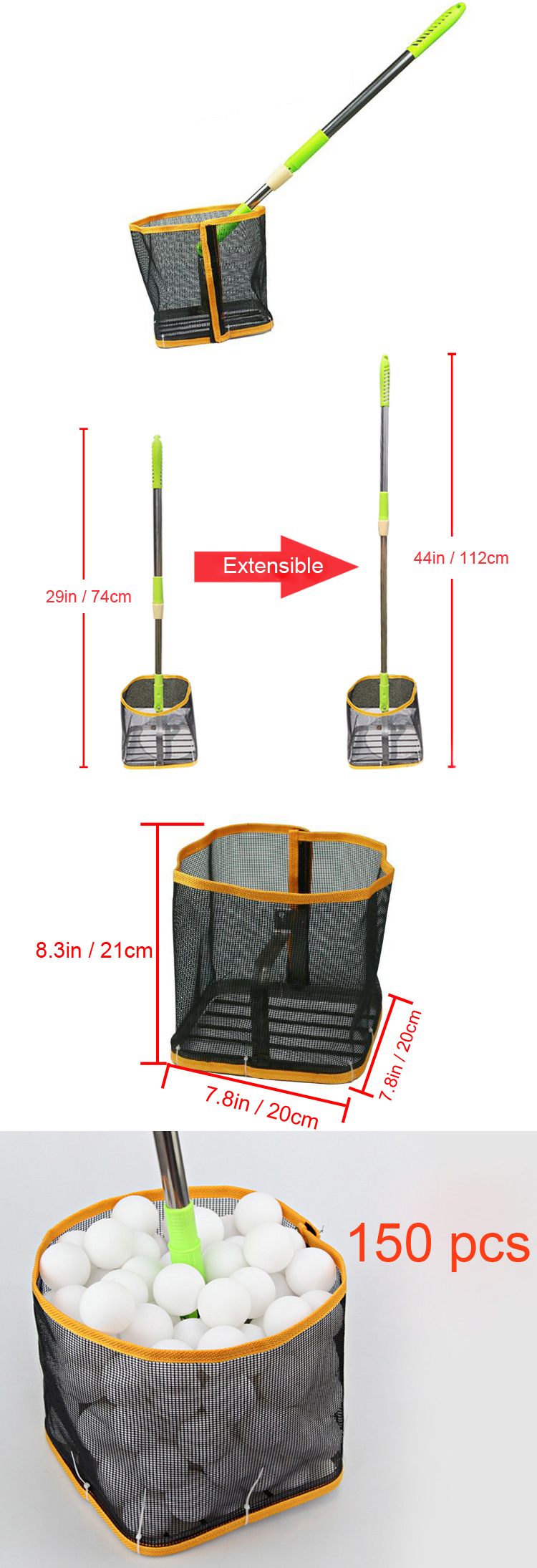 | feature | Adjustable height for easy picking up of balls without bending down |