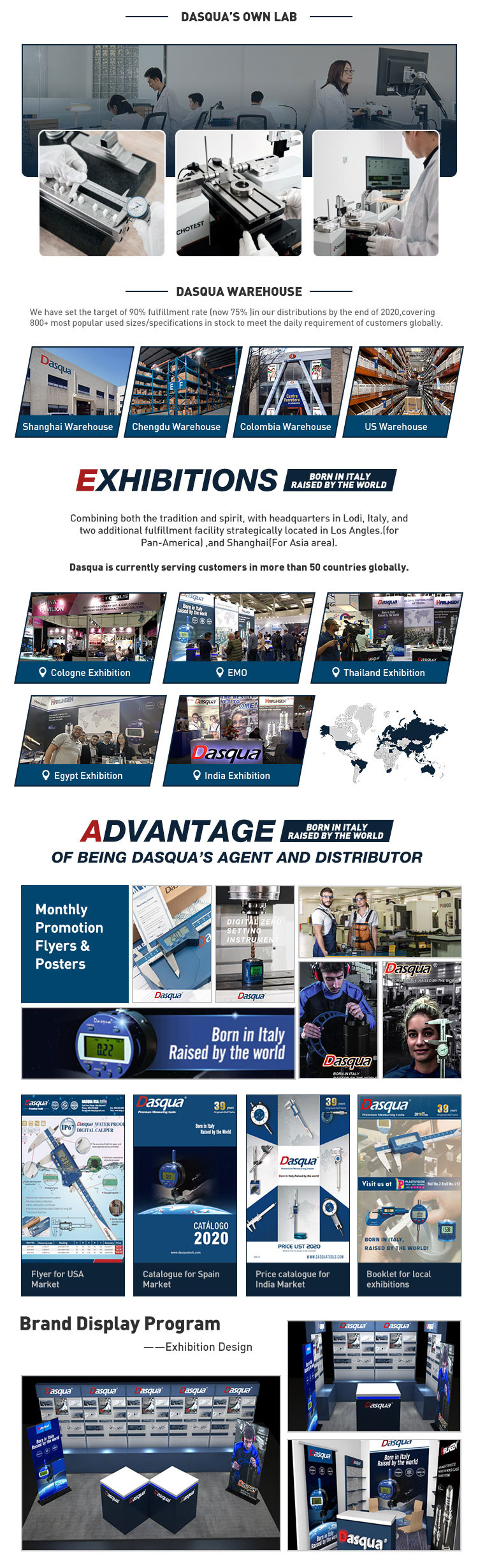 Most importantly, whether it's a slab of marble material from China, or a 100% European-made dial indicator with 0.001mm resolution, we serve you with pride and confidence - when it comes to precision measurement, Dasqua is in the lineup. .Dasqua's core values and long-standing shared culture are: Honesty; Reliability; Responsibility.--- HRR
