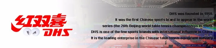 Double Happiness (DHS), official equipment supply for 27th, 28th, 29th Olympic games, has its unique view point on the study of materials and formula, making technique, the mutual influence between table tennis and motor function