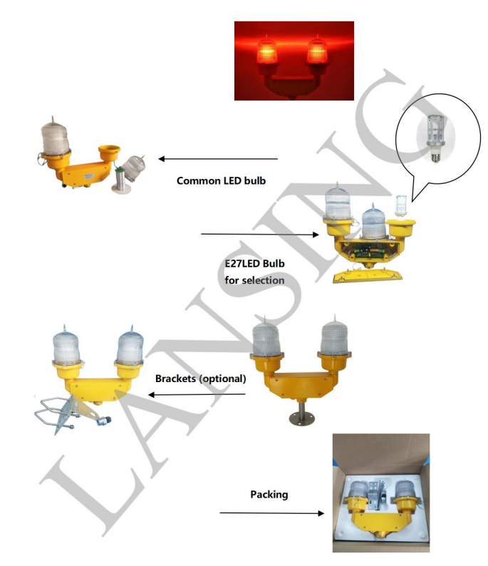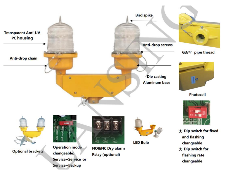• All hardware of the obstruction light is made of corrosion-resistant metal.