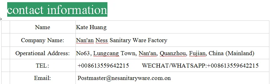 Nan'an Nes sanitryware factory is a professional manufacturer both in designing, producing and selling sanitary ware products , which is located in Luncang Town, Nan'an city , Fujian province , China.