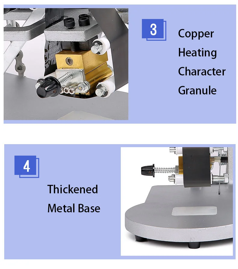 Description: DY-8 is manual; it’s very simple and easy for use. · Adopt color ribbon, has the features of clear printing, easy dry, non-sticky, not easy to wipe off. · Can print codes on thin paper cardboard, paper sheet, leather, plastic film, aluminum foil, especially fit for coding on paper box of shoes, clothing. · Adopt constant temperature controlling and adjustable temperature, printed suitable for color ribbon made out of different kinds of materials. |
