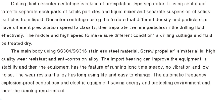 | Machinery Test Report: | Provided; | Keyword: | Drilling fluid decanter centrifuge; |