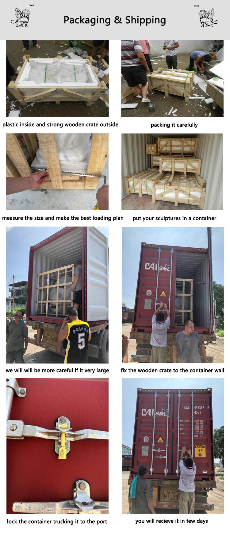 If it is a sculpture of ordinary size, we usually finish the production in 40 days.