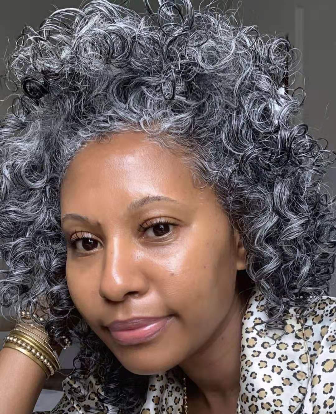 Deep curly gray human hair extension gray hair braided bunch salt and pepper ponytail puffy bun 120g140g