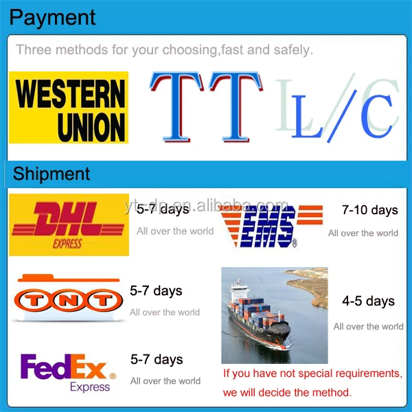 4.Delivery: by TNT, DHL, FedEx, or by sea.