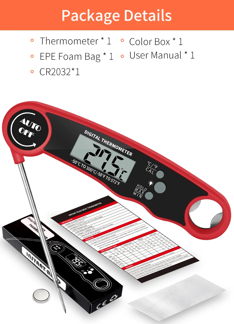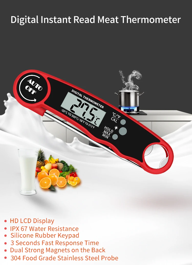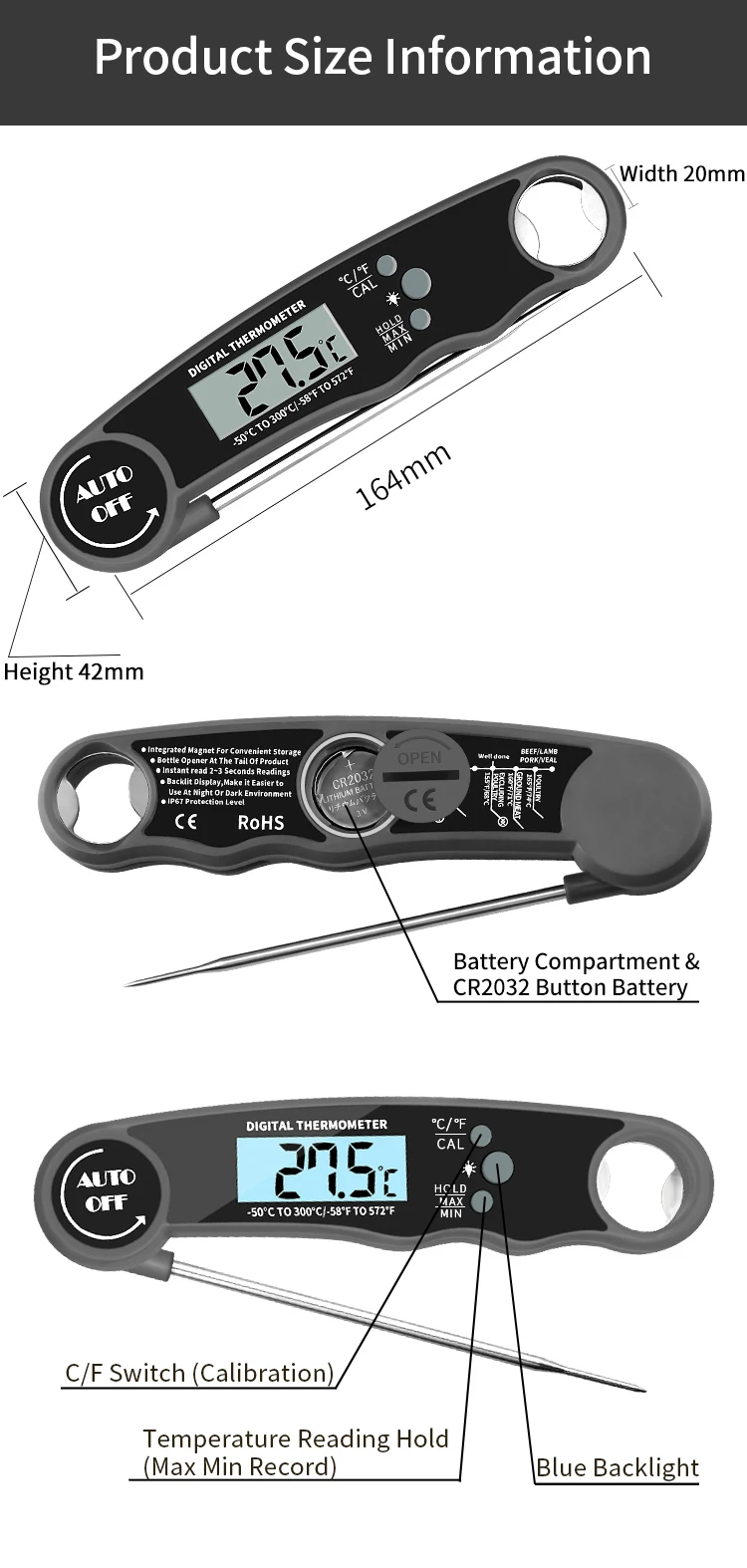 Digital Instant Read Waterproof Meat Thermometer BBQ Oven Candy Cooking Kitchen Thermometer with Foldable Probe