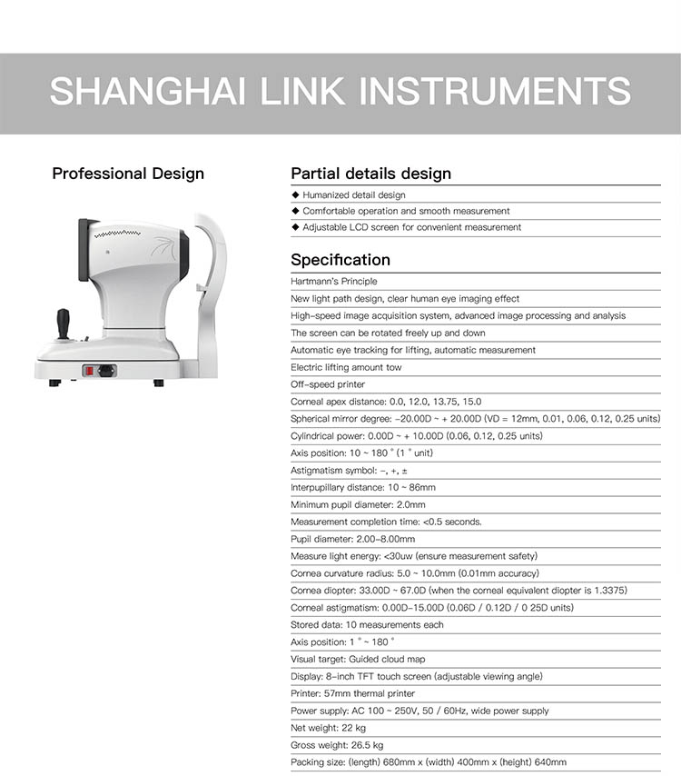 | Corneal measurements: | Axis 0°~180° (1° step) | Customization support: | OEM production |
