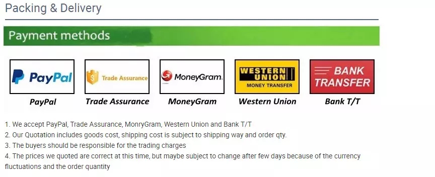 | application: | Body | payment terms: | L/C, Western Union, D/P, D/A, T/T, MoneyGram |