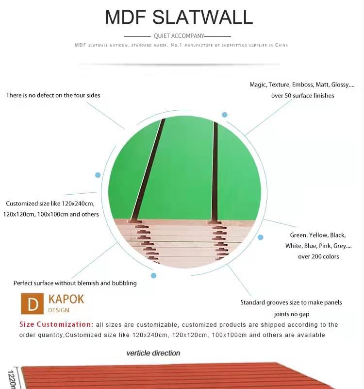 MDF display boards are widely used in retail stores to display products and merchandise. Supermarkets, shop decoration, gondola racks, display racks, lockers, garage cabinets, garage storage systems, hardware chain stores, exclusive agents, markets, galleries, etc.