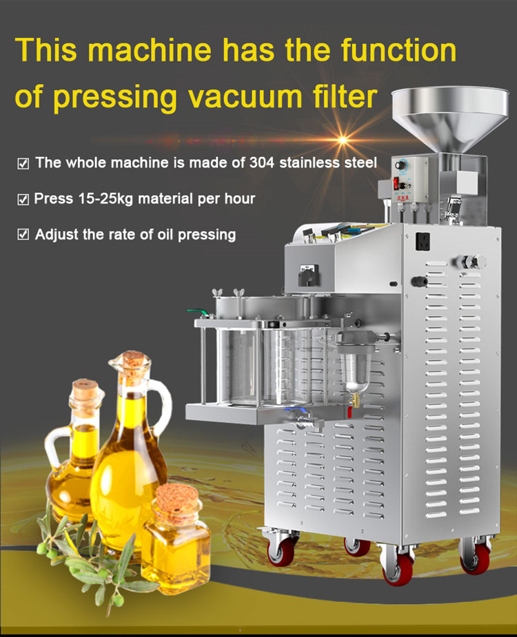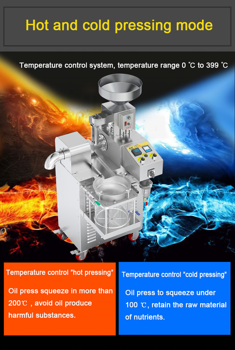 This oil press machine is suitable for pressing: peanuts, soybeans, sunflowers, rapeseeds, walnuts, linseeds, almonds, sesame, etc.