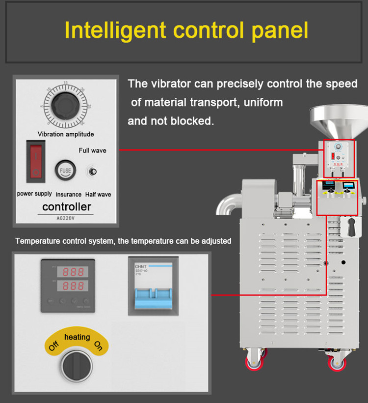 | usage: | Peanuts, Sesame, Flaxseed, Sunflower Seeds, Peanut Oil | Machine material: | Stainless steel screw and chamber |
