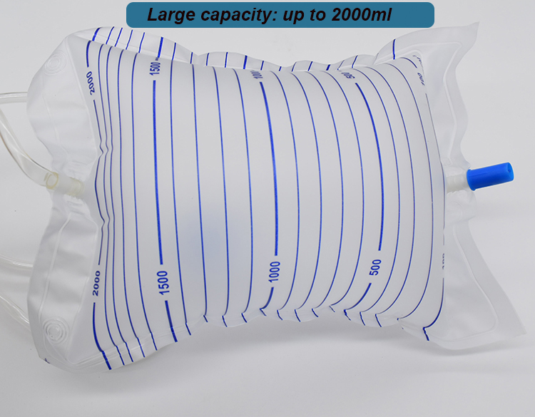 | Packaging Details: | 2000ml PVC adult urine collection bag disposable urine bag 1/PE bag, 10/inner bag, 250/carton, carton size: 40*32*40cm gross weight: 11kg net weight: 10kg | Catheter length: | 13 inches |