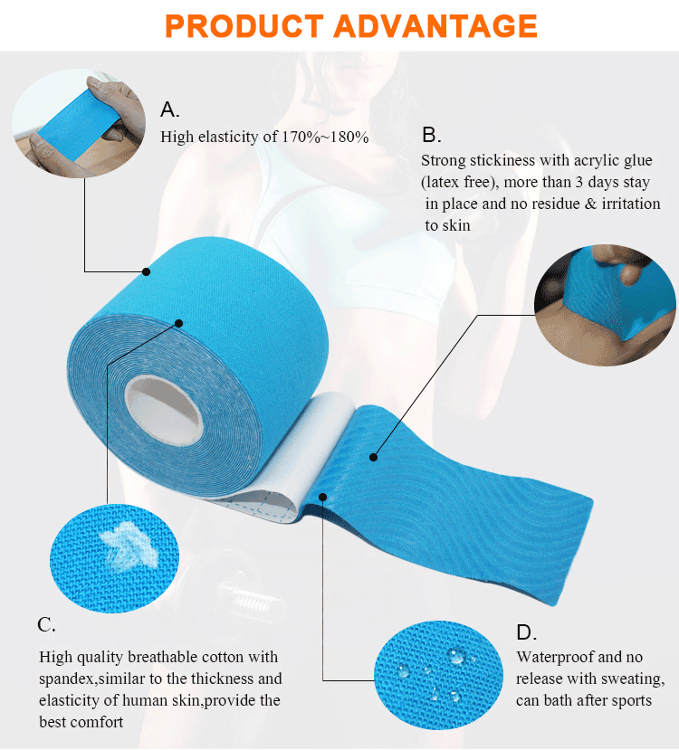 Double Sided Hypoallergenic Sports Strap Kinesiology Epos Kt Waterproof Kinesiology Strap