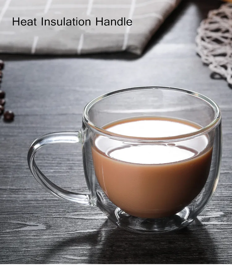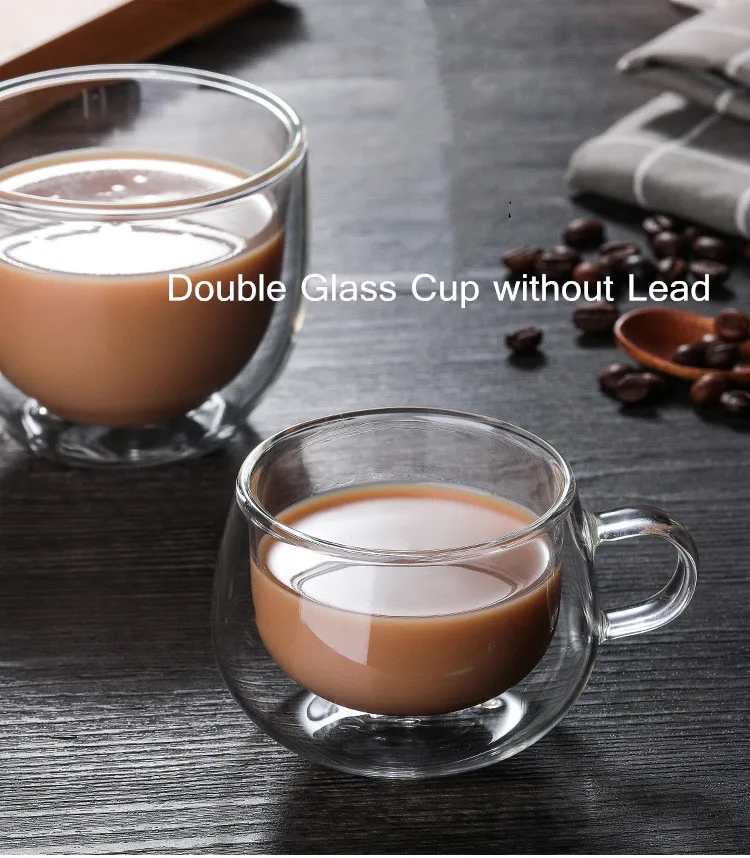 Double Wall Glass Cup High Borosilicate Transparent Coffee Tumblers with Handle