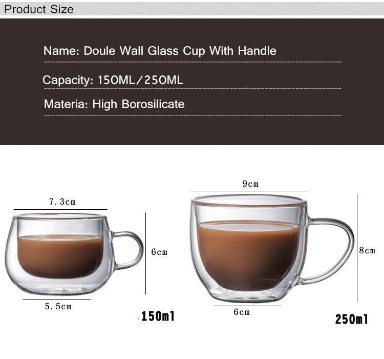 | Name: | Double Wall Glass Cup High Borosilicate Transparent Coffee Tumblers with Handle |
