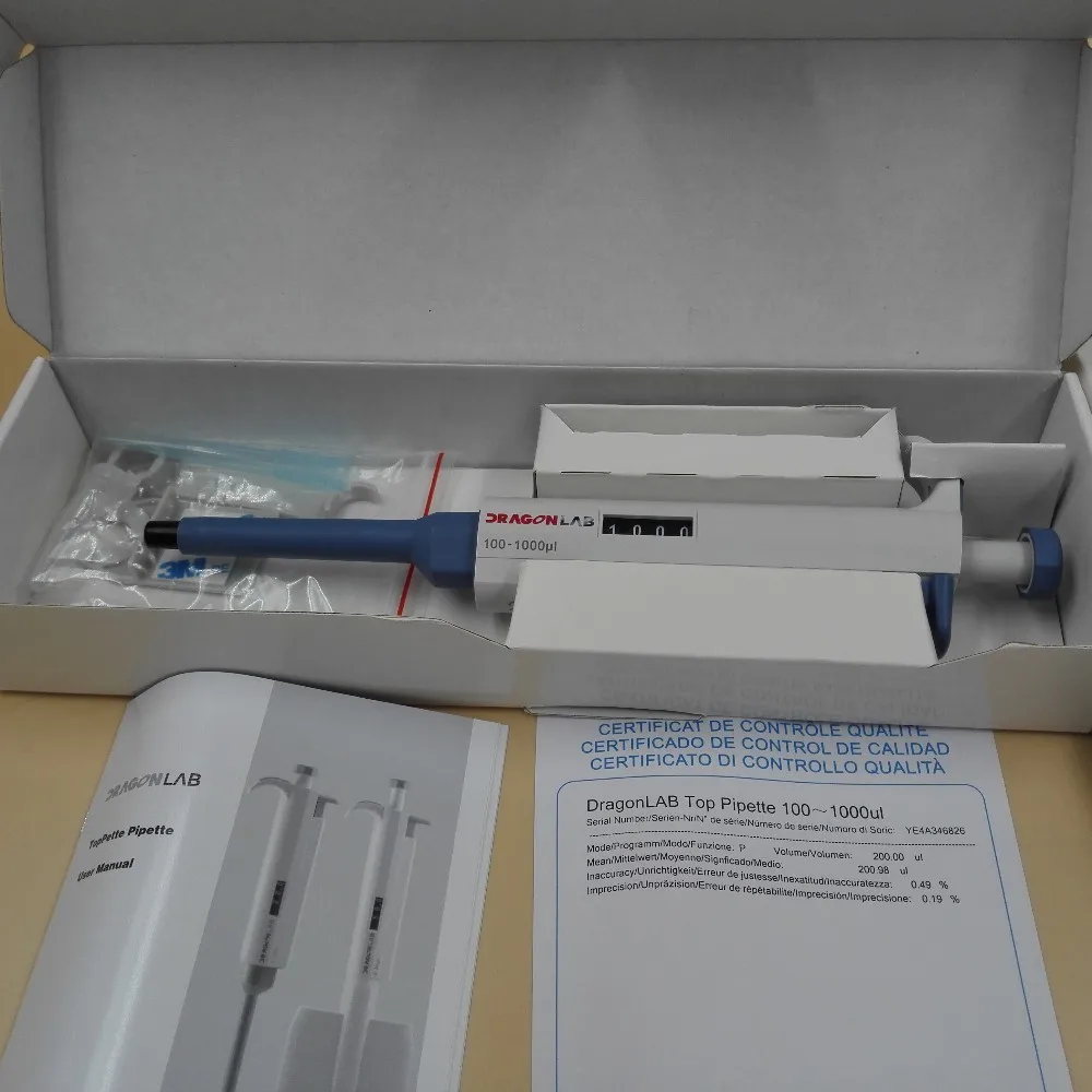 7.All DLAB pipettes have been quality tested according to ISO8655-2:2002 and are supplied with individual calibration certificates. The quality control includes gravimetric testing of each pipette with distilled water at 22℃.