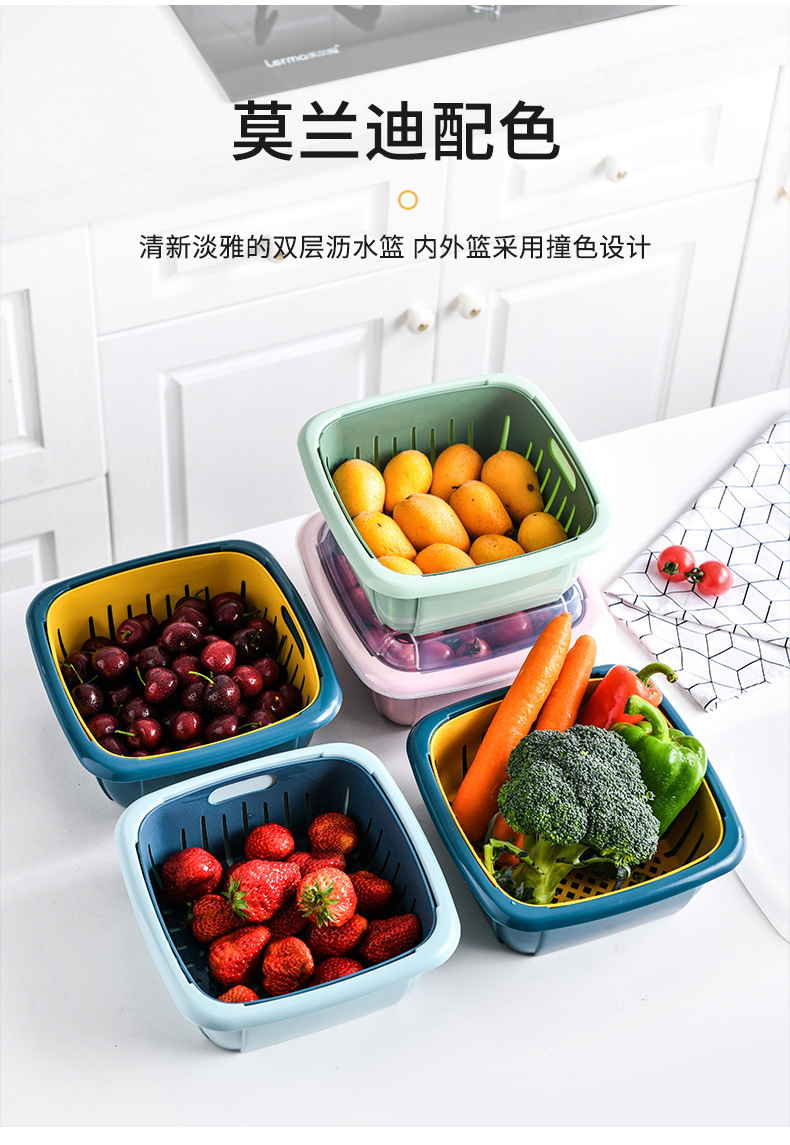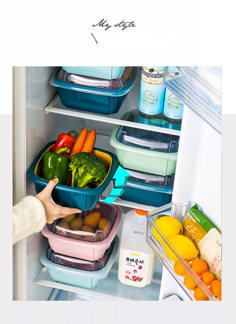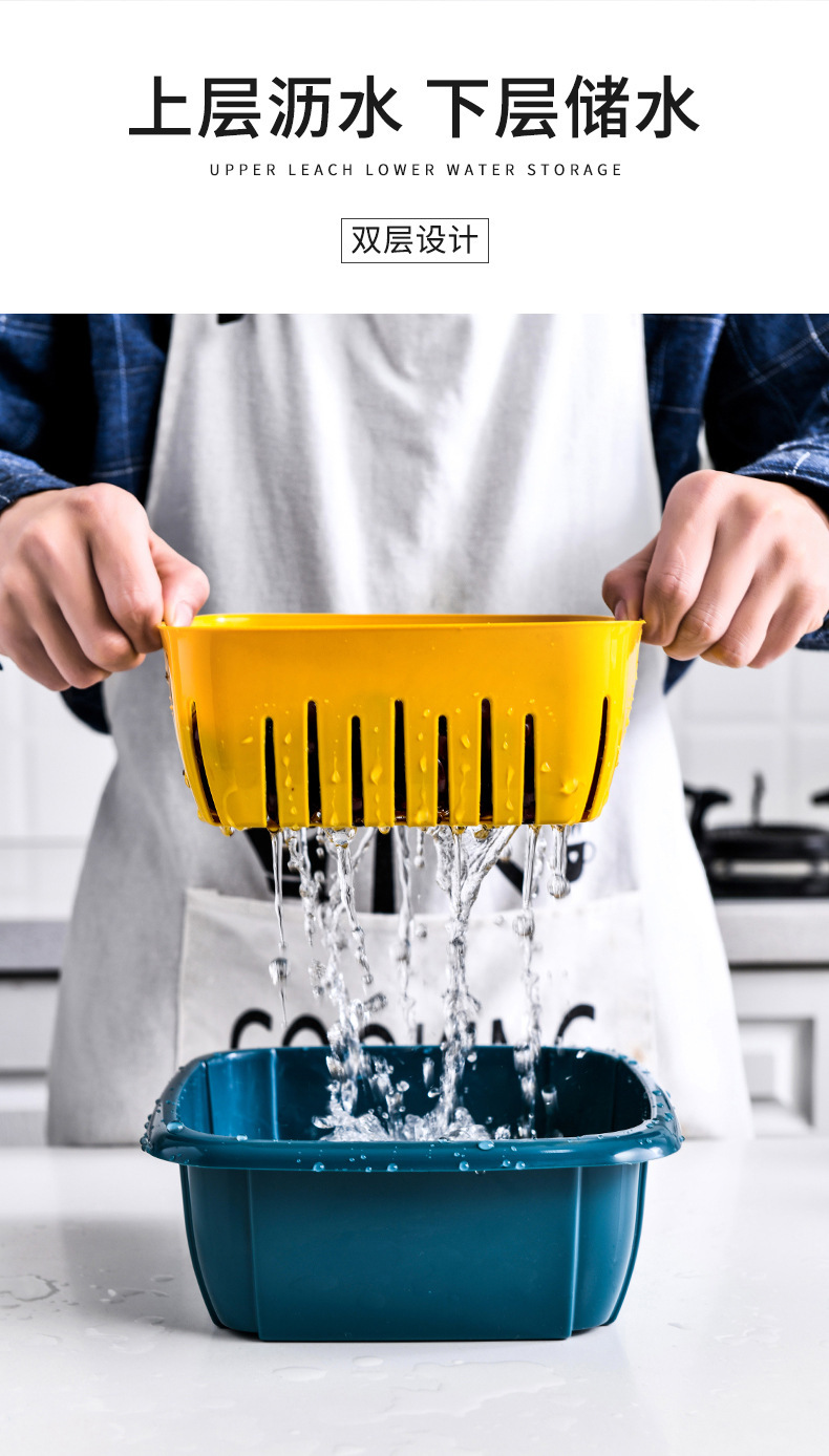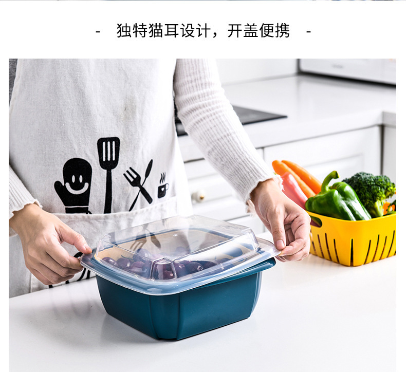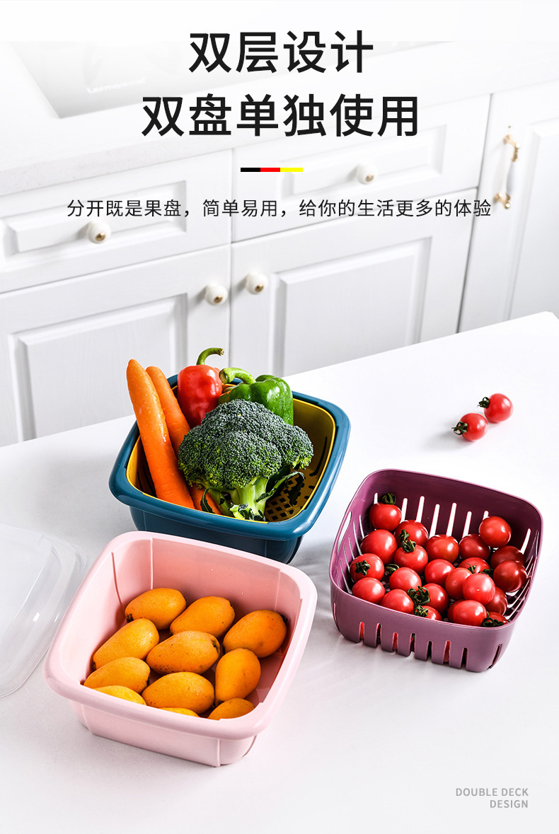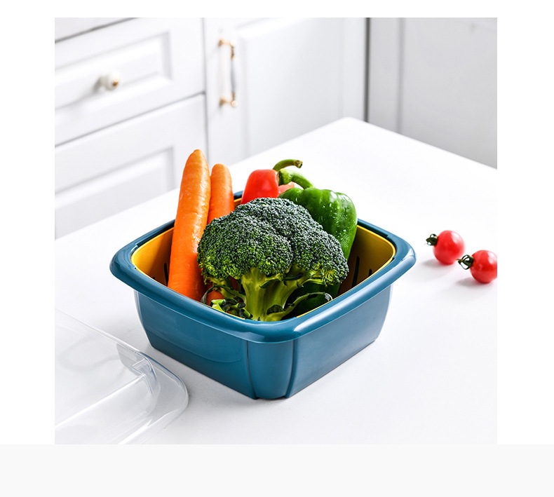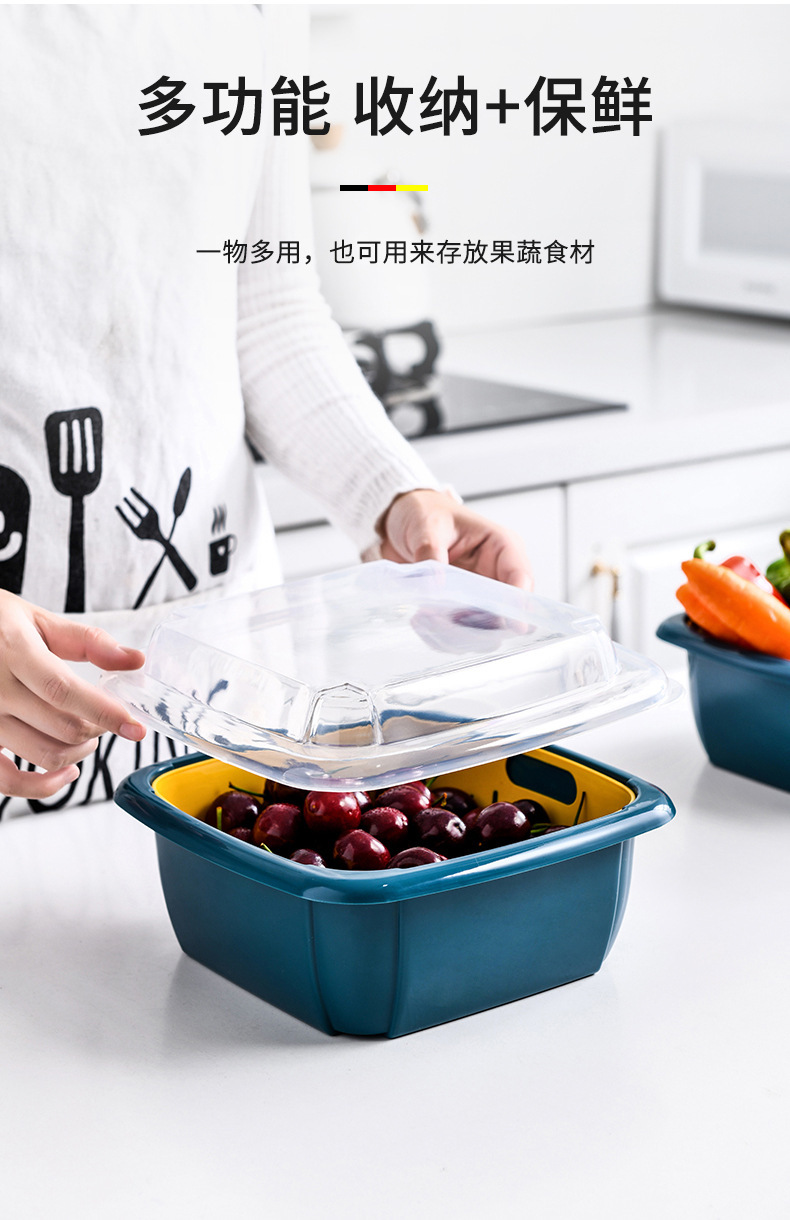 Drain basket home kitchen vegetable washing fruit preservation box with cover plastic large multi-functional storage basket