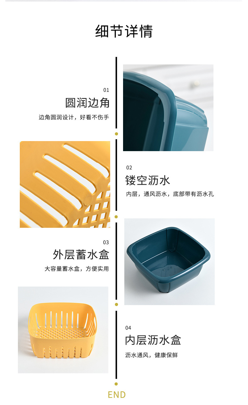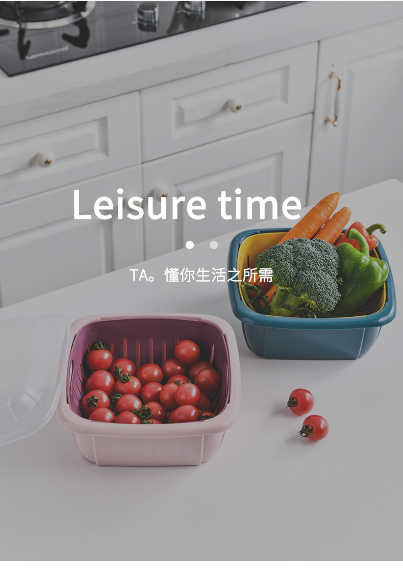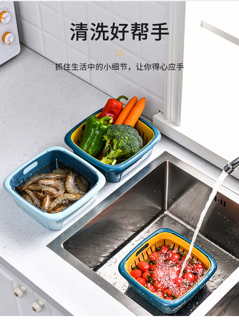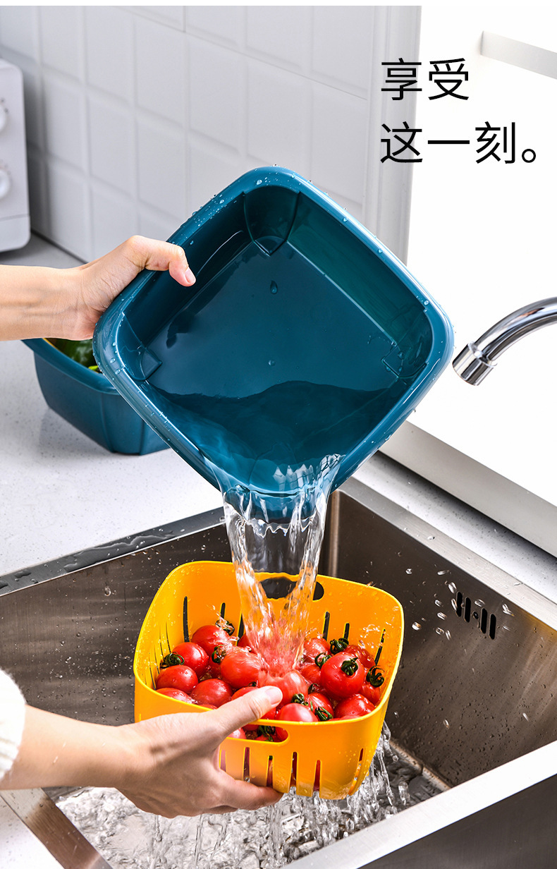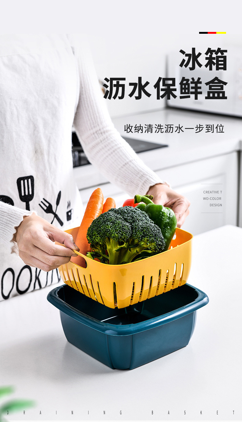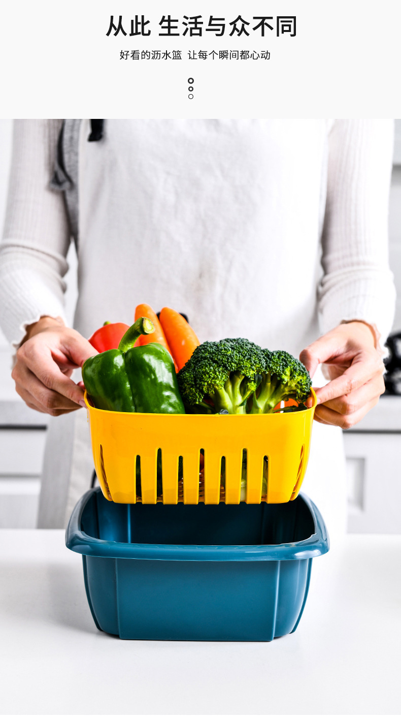 Drain basket home kitchen vegetable washing fruit preservation box with cover plastic large multi-functional storage basket