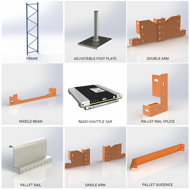 The shuttle frame has frame, shuttle car, middle beam, pallet guide rail, single arm, double arm, pallet guide rail splicing, adjustable foot plate, etc.