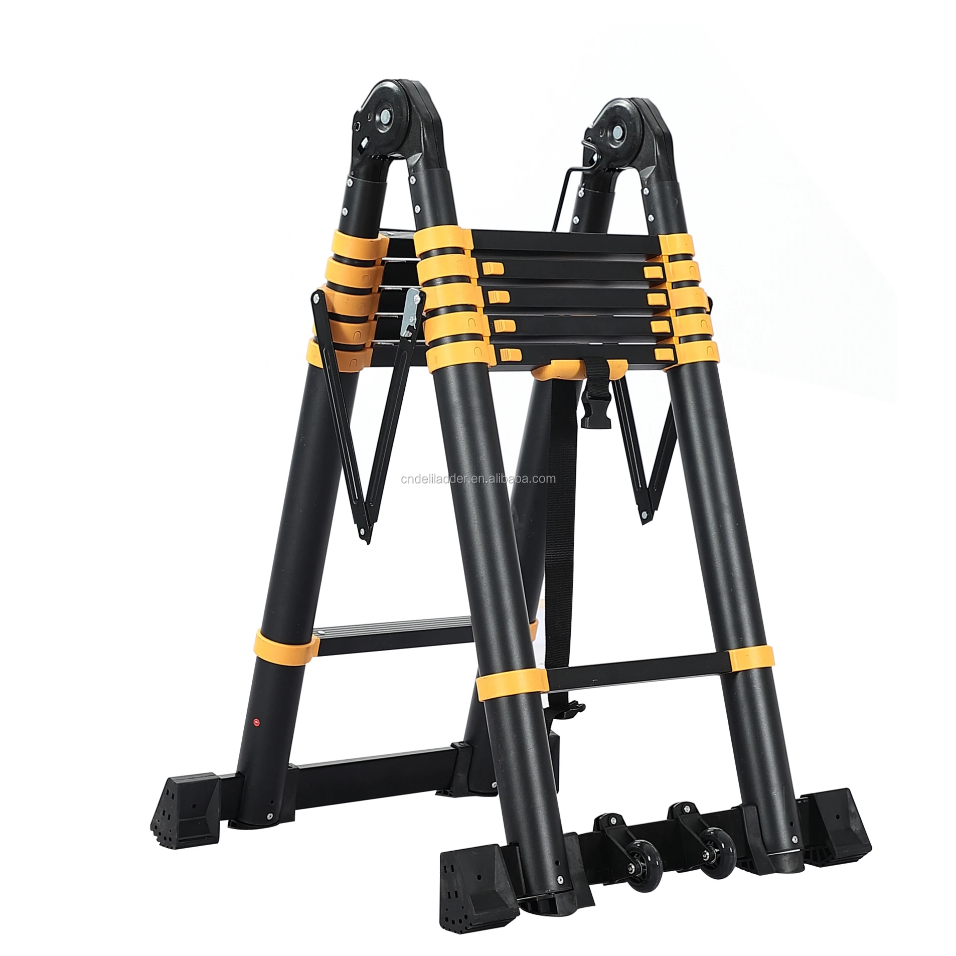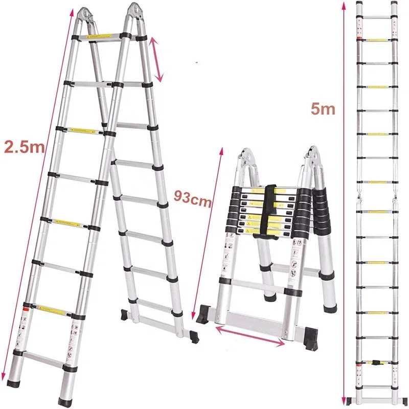 EN131 New Design 5M Telescopic Retractable Loft Folding Step Aluminium Telescopic Ladder