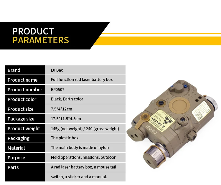 EP0507 red laser Battery Box Red Dot Laser White LED Flashlight IR Night Vision Weapon Light 20mm Rail Hunting Rifle Airsoft PEQ