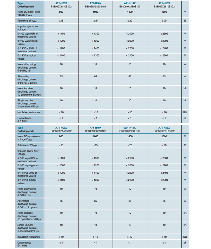 | DC spark voltage: | 1000V | Impulse discharge current: | 10KA |