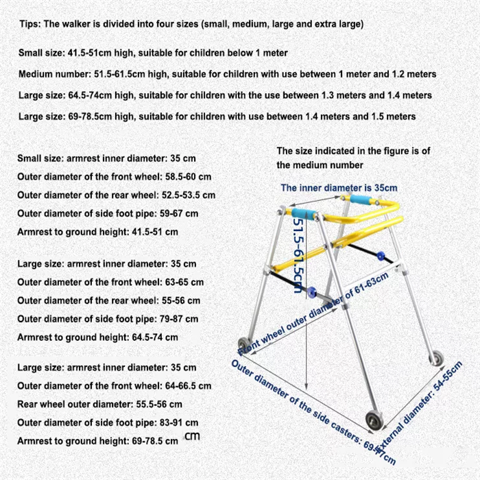 Aluminum alloy folding portable wheel walker for children with cerebral palsy