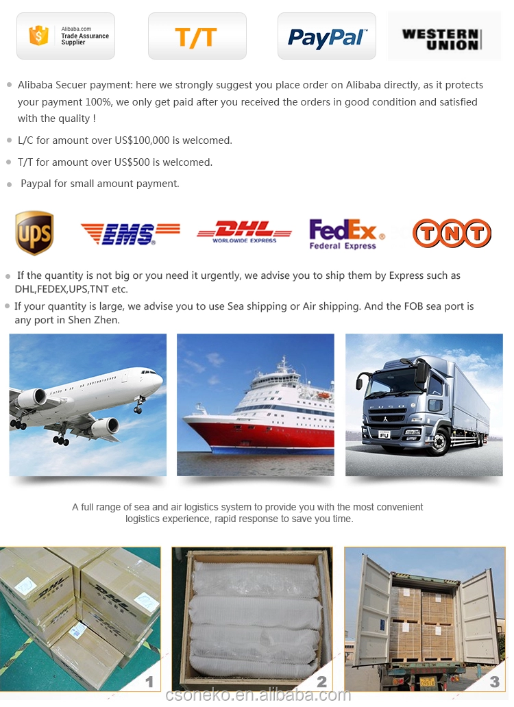 | transportation | By sea, air, express, DHL, UPS, Fedex |