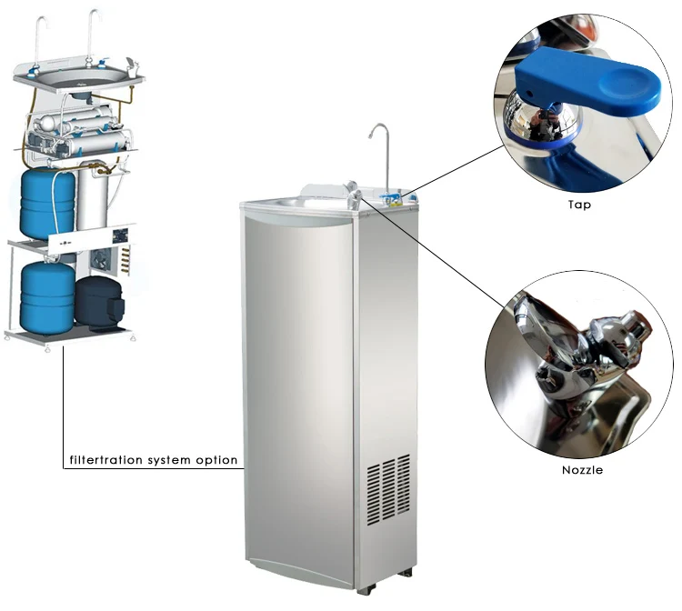 | Cooling system | Compressor: Single phase motor (Huayi/Danfu) Refrigerant: R134a Temp range: 4-10°C(39.2-50°F) Material of cold tank: SUS304(S.S) Cold Water Capacity: 3L |