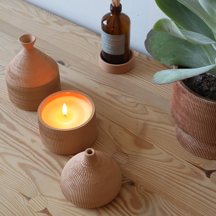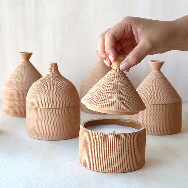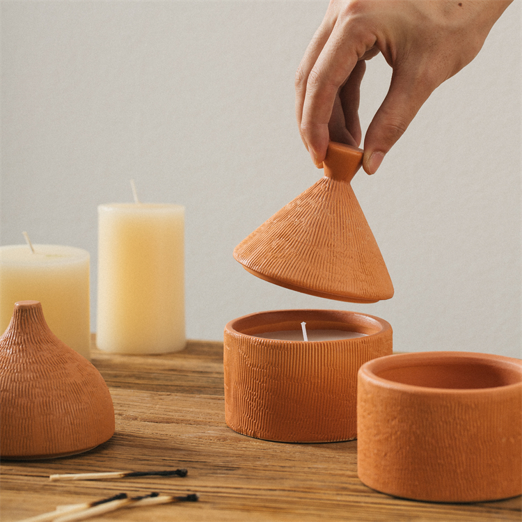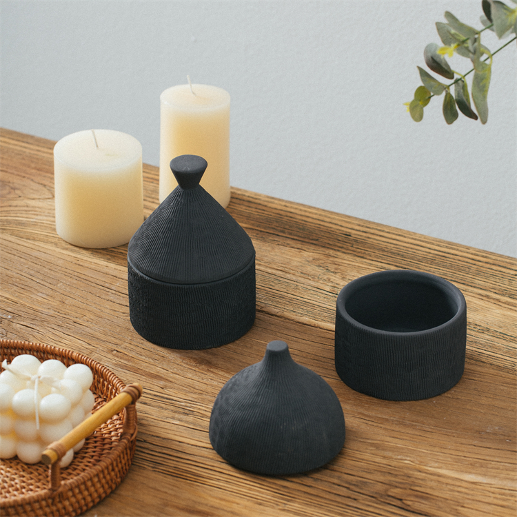 | Name | Embossed Surface Texture Vintage Home Decor Unique Candle Container Overhead Matte Clay Ceramic Candle Jar with Lid |
