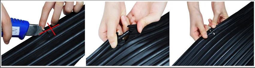 Due to puncture or bird damage, cut out the damaged section of tube(approx,5mm either side of the hole),then insert the spare splicing barbs supplied.