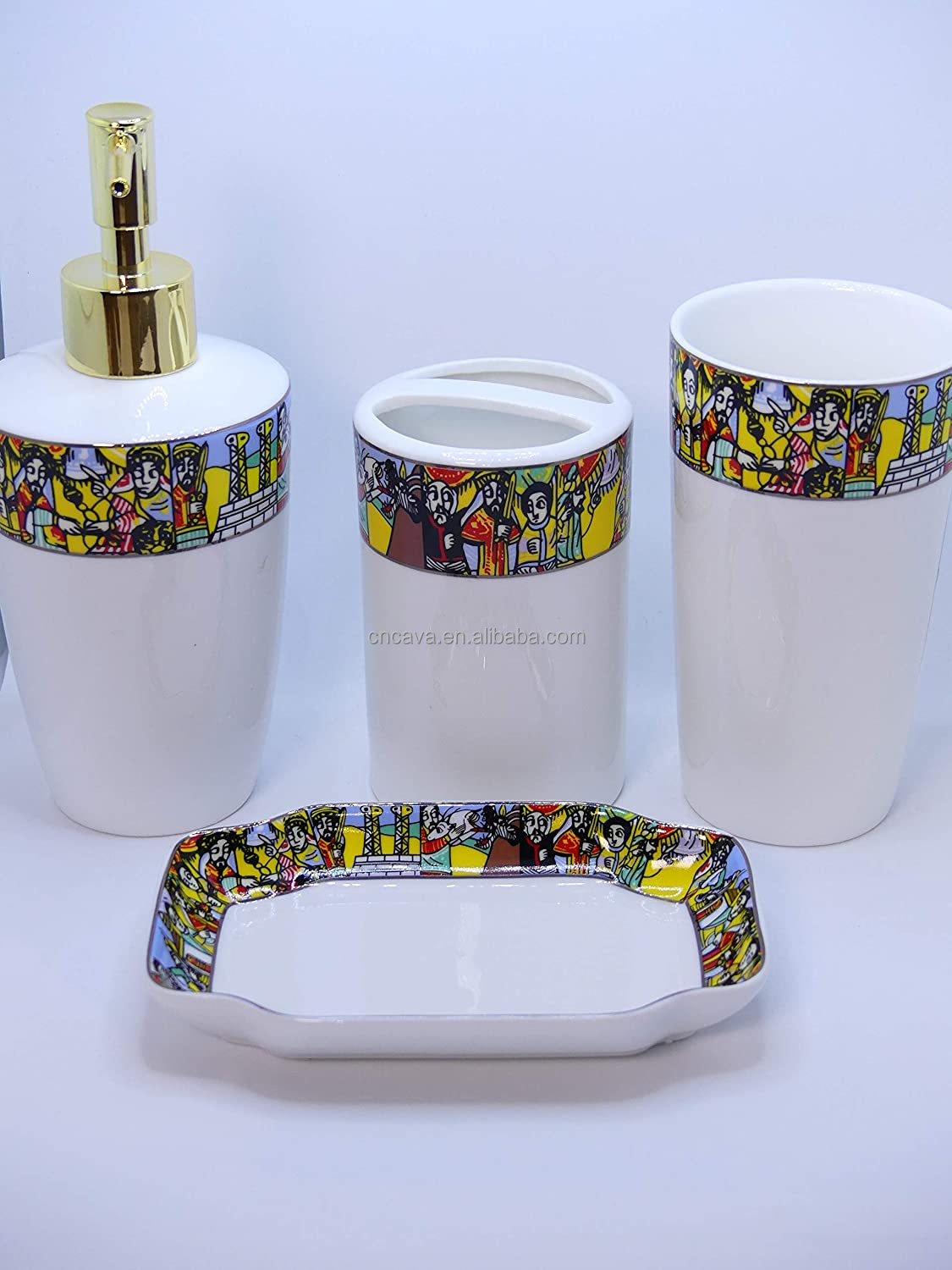 Ethiopian/Eritrean Queen of Saba Design 4 Piece Porcelain Bathroom Set