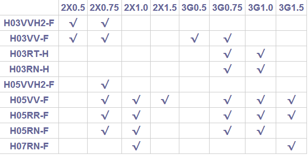 Cable type: H05VV-F2*0.75/1.0/1.5MM2