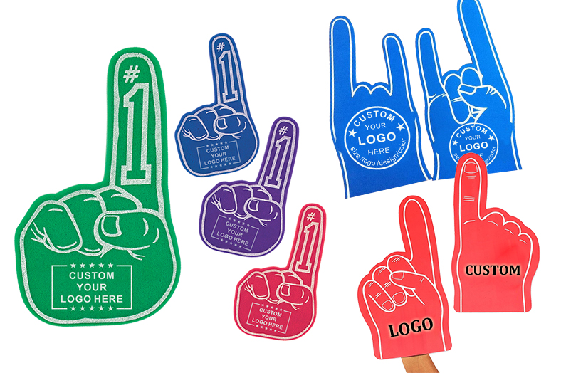 Custom EVA foam fingersandprinted foam handsA classic choice for sports fans, events or family groups. EVA foam handCan be printed on the front and back of the hand. Choose from a variety of colors to serve as an eye-catching backdrop for your team logoBranded foam fingers. |