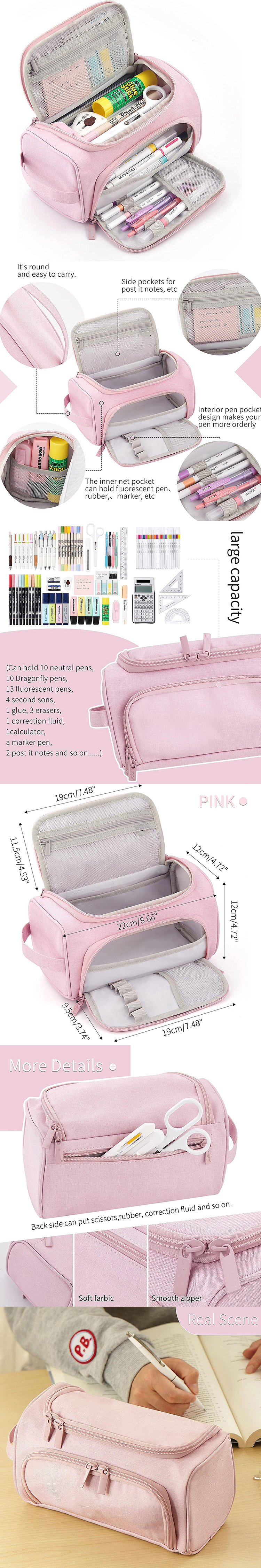 Factory Custom Fabric Canvas Pink School Bag Large Capacity School Pencil Case Bag