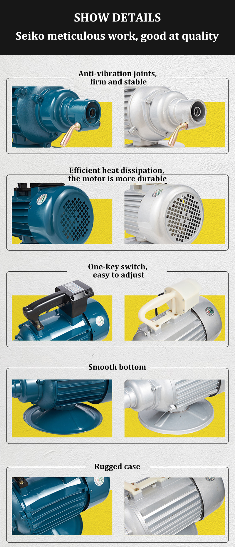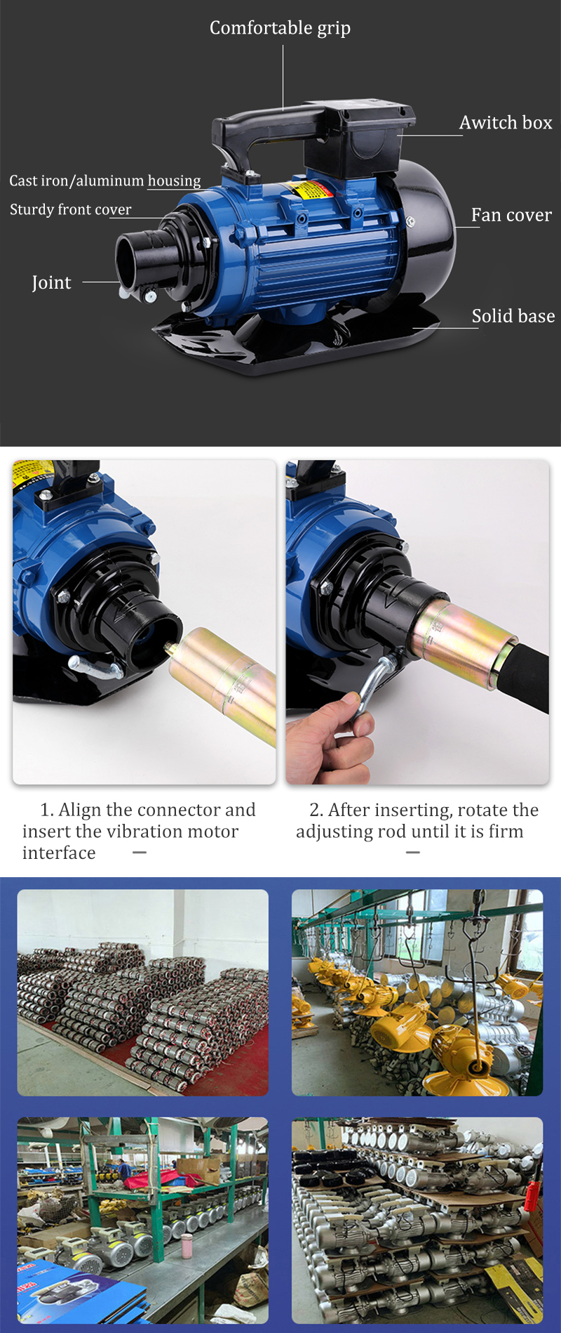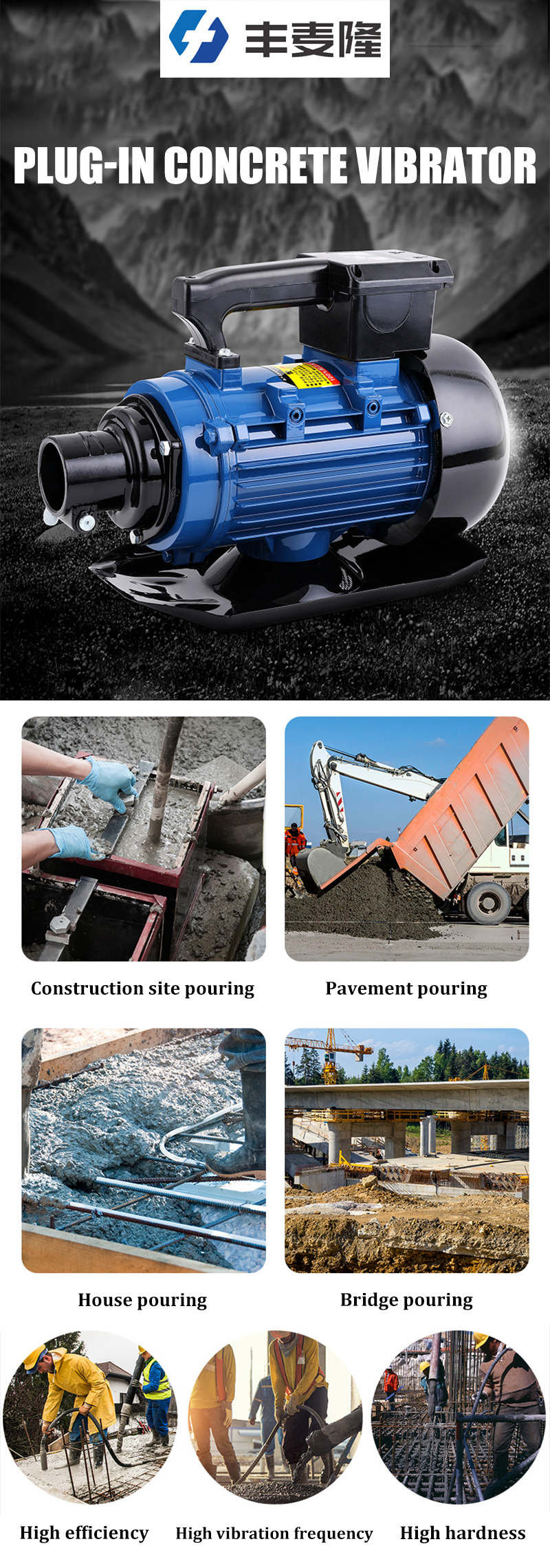 | Unique selling point: | Pure copper motor coil, vacuum dipped for 10 hours | application: | Concrete vibration work in construction industry and other scenes |