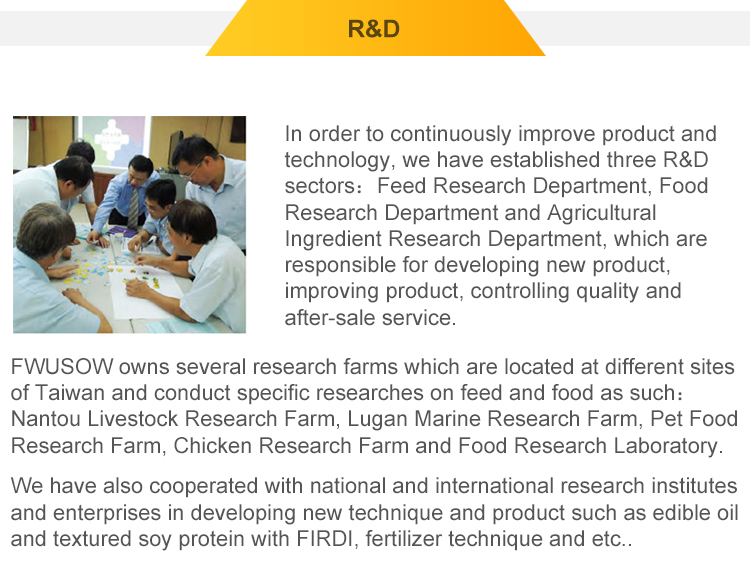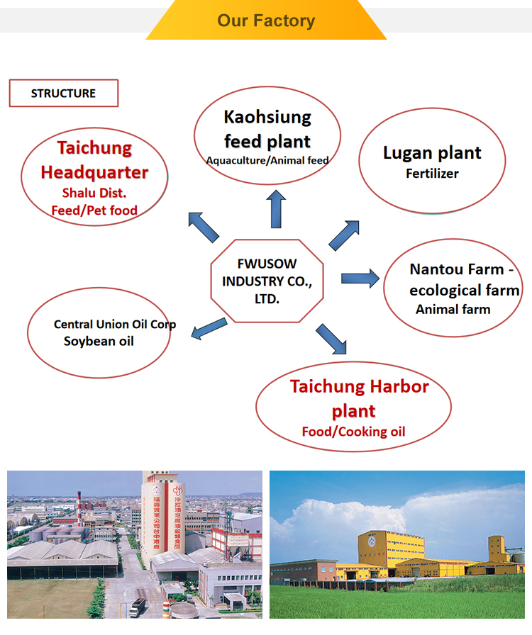 Fwusow Industry's strength is built on its wide range of quality products; Pet Food, Feed Products, Edible (Cooking) Oil, Sesame Oil, Breakfast Cereals, Bonito Flakes, Fertilizers and Bio Fertilizers.