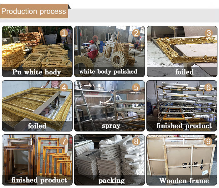 Factory Wholesale Large 60x90cm Baroque Ornate Golden Wooden Mirror Frame and Painting